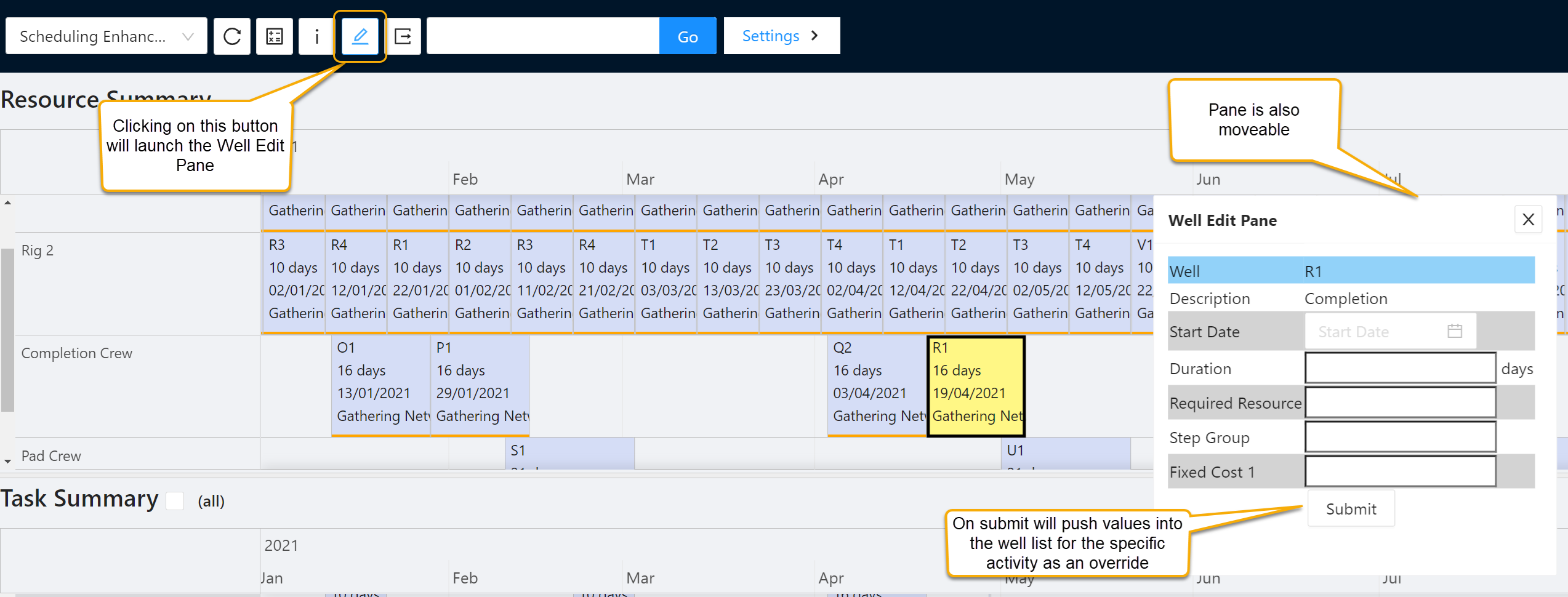 Alternatively, there is also an Edit Pane that allows for the overriding values of the Well List to be edited as required so as to affect subsequent calculations.