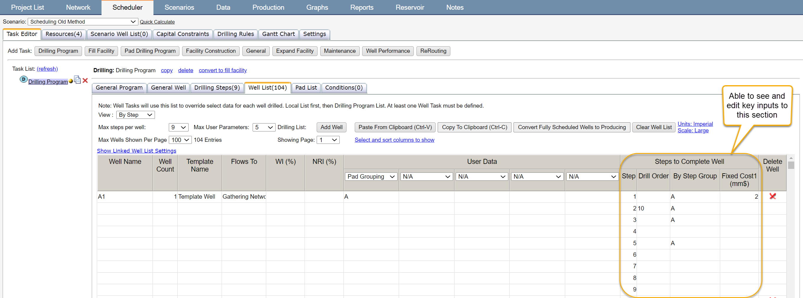 In addition to being able to configure a set of inputs to be visible for all activities, you may also bring up a Well Info pane that enables all attributes to be displayed for a single selected activity.