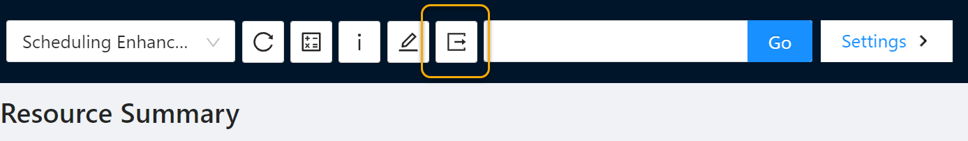 In addition to being able to view and interact with the Gantt within the main window, the currently selected time horizon may be exported to Excel via the button in the top menu shown below: