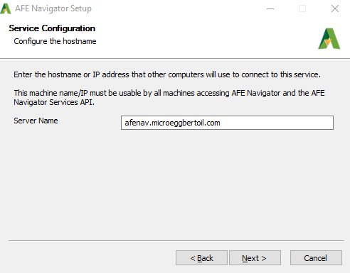 In this example we will configure our environment to use afenav.microeggbertoil.com.
