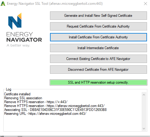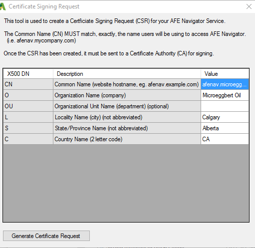 The CN must match the name of the Aucerna Execute service (in our case here, afenav.microeggbertoil.com).