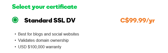 We only need a single server DV (Domain Validation) certificate for our purposes.