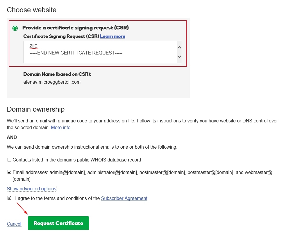 With GoDaddy we buy the certificate first and upload the CSR once we have paid.