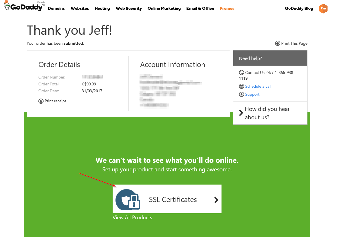 Once we have paid for our certificate we are able to request that the certificate be created.