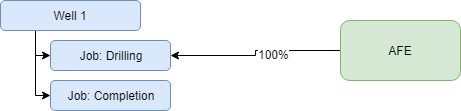 In cases where an AFE combines costs from multiple jobs onto a single AFE (such as combining drilling and completion costs), the AFE can be linked to multiple jobs on the same Well and the AFE estimate allocated to each Job based on a % allocation.